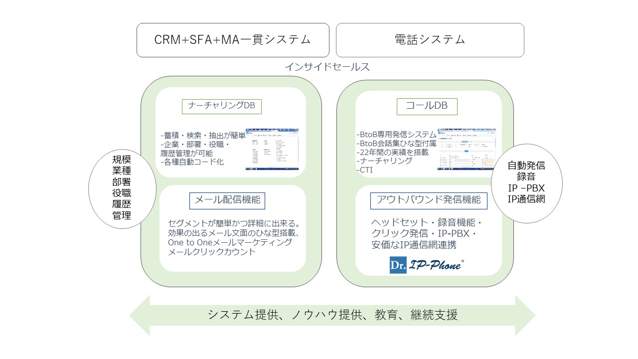 Dr.IP-Phone®は、インサイドセールスの電話対応で必要なIP-PBX機能を網羅したマーケティングオートメーションツールです。