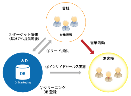 情報提供を行いながら、お客様のキーマン/担当者情報を把握し、課題やニーズの確認を行っていく作業をさす。